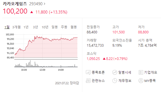 īī¿À°ÔÀÓÁî ÁÖ°¡°¡ 10% ³Ñ°Ô ¿À¸£¸é¼ ÀÌÆ² ¿¬¼Ó 52ÁÖ ½Å°í°¡¸¦ °æ½ÅÇß´Ù. 7¿ù 21ÀÏ Á¾°¡´Â 88,400 ¿øÀ¸·Î ÀüÀÏ ´ëºñ 5.36% ¿Ã¶ú°í 7¿ù 22ÀÏ Á¾°¡´Â 100,200¿øÀ¸·Î ÀüÀÏ ´ëºñ 13.3% ¿Ã¶ú´Ù. 7¿ù 21ÀÏ ÀåÁß¿¡´Â 9¸¸ ¿øÀ» ³Ñ¾î¼ ½Å°í°¡¸¦ ±â·ÏÇÏ´õ´Ï 7¿ù 22ÀÏ¿¡µµ 10¸¸ ¿øÀ» ³Ñ°Ü ¶Ç´Ù½Ã ½Å°í°¡¸¦ °æ½ÅÇß´Ù.