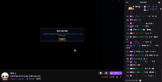 ÇÏÁö¸¸ ÀÌ·± ´ëÀÀÀº ¡®LoL¡¯ ºñ°øÀΠģ¼± ´ëȸÀÎ ¡®2020 AMD ÀÚ³º´ë¡¯ ÁøÇà Áß ÀÎÅÍ³Ý °³Àιæ¼Û ½ºÆ®¸®¸Ó ¡®¾Ç¾î¡¯°¡ ¿µ±¸ Á¤Áö´çÇÏ¸é¼ ºñÆÇ¿¡ È۽ο´´Ù. ´ç½Ã ½ÃûÀÚ´Â 25¸¸ ¸í¿¡ ´ÞÇß°í °³ÀΠȸéÀ̳ª Ä«¸Þ¶ó¸¦ ÅëÇØ ¹«°í Á¦Àç¶ó´Â Áõ°Åµµ ¸íÈ®Çß´Ù. ÇØ´ç »ç°ÇÀº ¿À·ù·Î ÀÎÇÑ ¹«°í Á¦Àç·Î ÆÇÁ¤, °èÁ¤ Á¤Áö Áï½Ã ÇØÁ¦·Î ÀϴܶôµÆ´Ù.
