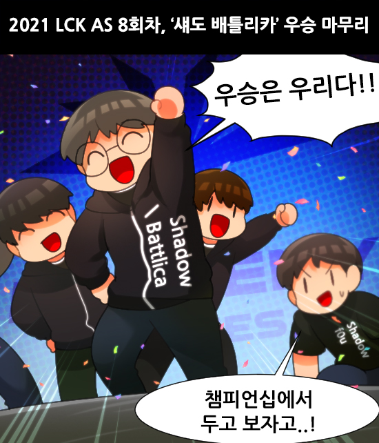 Çѱ¹e½ºÆ÷Ã÷Çùȸ(Korea e-Sports Association, KeSPA)¿Í ¶óÀ̾ù °ÔÀÓÁî(ÀÌÇÏ ¶óÀ̾ù)°¡ ¡®¸®±× ¿Àºê ·¹Àüµå(League of Legends, ÀÌÇÏ LoL)¡¯ À¯¸ÁÁÖ¸¦ ¹ß±¼Çϱâ À§ÇØ ¿î¿µÇÏ´Â ¡®2021 LoL èÇǾ𽺠ÄÚ¸®¾Æ(Champions Korea, ÀÌÇÏ LCK) ¾ÆÄ«µ¥¹Ì ½Ã¸®Áî(Academy Series, ÀÌÇÏ AS)¡¯ 8ȸÂ÷ ´ëȸ¿¡¼ ¼¨µµ ¹èƲ¸®Ä«(Shadow Battlica, ÀÌÇÏ ¹èƲ¸®Ä«)°¡ ¿ì½ÂÇß´Ù.