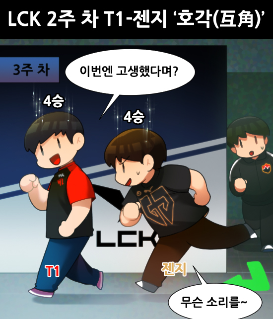 ¿ì½Â Èĺ¸ T1°ú Á¨Áö e½ºÆ÷Ã÷(ÀÌÇÏ Á¨Áö)´Â 2ÁÖ Â÷¿¡µµ ¿¬½ÂÀ» À̾´Ù. 10°³ ÆÀ Áß 1ÆÐµµ ±â·ÏÇÏÁö ¾ÊÀº ÆÀÀº T1°ú Á¨Áö µÑ»ÓÀÌ´Ù. ¶ÇÇÑ, ¼ºÎ¸®±×(¡®LCK¡¯ Âü°¡ 10°³ ÆÀ Áß Á¤±Ô ½ÃÁð 1~5À§ ÆÀ)¿Í µ¿ºÎ¸®±×(¡®LCK¡¯ Âü°¡ 10°³ ÆÀ Áß Á¤±Ô ½ÃÁð 6~10À§ ÆÀ) °£ ¿ì¿ÀÌ ¾î´À Á¤µµ µå·¯³ª±â ½ÃÀÛÇß´Ù.