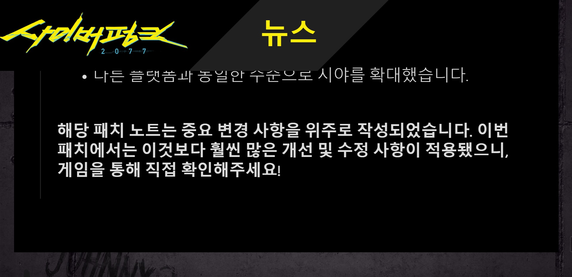 CDPRÀº Çѱ¹½Ã°£ 2¿ù 16ÀÏ 0½Ã °ø½Ä ÀÎÅÍ³Ý ¹æ¼Û ä³Î¿¡¼ ÁøÇàµÈ Ưº° ¹æ¼ÛÀ» ÅëÇØ '»çÀ̹öÆãÅ© 2077' 1.5 ¹öÀü ´ë±Ô¸ð ÆÐÄ¡ ³»¿ªÀ» °ø°³Çß´Ù.