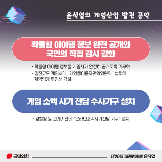 20´ë ´ëÅë·É ¼±°Å¿¡¼ ±¹¹ÎÀÇÈû À±¼®¿ È帰¡ ´ç¼±µÆ´Ù. ¼±°Å Àü ´ç¼±ÀÎÀº ¡®°ÔÀ̸Ӱ¡ ¿ì¼±¡¯À» ±âÁ¶·Î È®·üÇü ¾ÆÀÌÅÛ Á¤º¸ °ø°³ ¹× ¼ÒºñÀÚ¿¡ ÀÇÇÑ °¨½Ã °È, °ÔÀÓ ¼Ò¾× »ç±â ÇÇÇØ Àü´ã ¼ö»ç ±â±¸ ¸¶·Ã, e½ºÆ÷Ã÷ Áö¿ª¿¬°íÁ¦ µµÀÔ ¹× Áö¿ø, Àå¾ÖÀÎ °ÔÀÓ Á¢±Ù¼º ºÒÆí ÇØ¼Ò µî ³× °¡Áö °ÔÀÓ »ê¾÷ ¹ßÀü °ø¾àÀ» ³»¼¼¿ü´Ù.