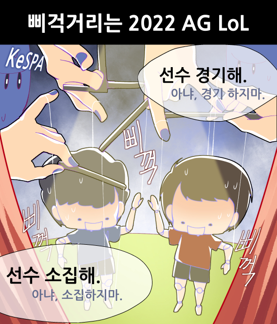Çѱ¹e½ºÆ÷Ã÷Çùȸ(Korea e-Sports Association, KeSPA)°¡ ¡®2022 Ç×Àú¿ì ¾Æ½Ã¾È °ÔÀÓ(Asian Game, AG)¡¯ ±¹°¡´ëÇ¥ ¼±Á¤ ¹®Á¦·Î ½Ã²ô·´´Ù. ¡®¸®±× ¿Àºê ·¹Àüµå(LoL)¡¯ Á¾¸ñÀº ÃÖÁ¾ 6ÀÎÀ» ¼±¹ßÇϴµ¥, ¿¹ºñ¸í´Ü 10ÀÎÀ» Á¤ÇÑ ÈÄ °ø°³ Æò°¡ÀüÀ» °ÅÃÄ 6¸íÀ» ¼±¹ßÇÏ·Á´Â °èȹÀ» ¹ßÇ¥ÇØ ÀûÁö ¾ÊÀº ºñÆÇÀ» ¹Þ°í ÀÖ´Ù.