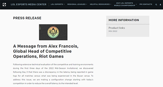 °ü·ÃÇØ ¶óÀ̾ù ¾Ë·º½º ÇÁ¶û¼ö¾Æ(Alex Francois) ±Û·Î¹ú °æÀï ¿î¿µ Ã¥ÀÓÀº ¡°¡¯2022 MSI¡¯ ù 3Àϰ£ ÁøÇàÇÑ °æÀï ¹× ÈÆ·Ã ȯ°æ ±â¼ú Æò°¡ 3ÀÏ Â÷¿¡ °æ±â ·Î±× ³» ±â·ÏµÈ Çΰú ºÎ»ê¿¡¼­ ½ÇÁ¦ °æÇèÇÑ ÇÎÀÌ ´Ù¸¥ Á¡À» ¹ß°ßÇß´Ù¡±¶ó¸ç ¡°¹®Á¦ ÇØ°á°ú ÇÔ²² Àüü Áö¿¬ ½Ã°£À» ÀǵµÇÑ ¼öÁØÀ¸·Î ÁÙÀ̱â À§ÇØ ¼³Á¤À» º¯°æÇϱâ·Î Çß´Ù¡±¶ó°í ¼³¸íÇß´Ù.