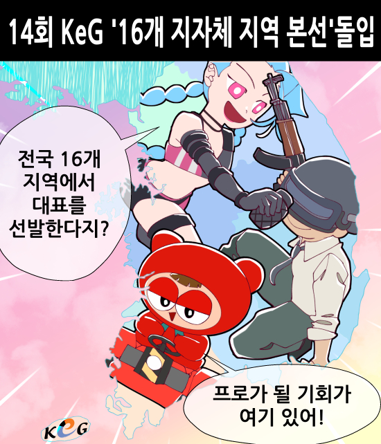 ¹®ÈüÀ°°ü±¤ºÎ ÁÖÃÖ, Çѱ¹e½ºÆ÷Ã÷Çùȸ(Korea e-Sports Association, KeSPA)°¡ ÁÖ°üÇÏ´Â ¡®Á¦14ȸ ´ëÅë·É ¹è Àü±¹ ¾Æ¸¶Ãß¾î e½ºÆ÷Ã÷´ëȸ(KOREA eSPORTS GAMES, ÀÌÇÏ KeG)¡¯°¡ Áö¿ª ´ëÇ¥ ¼±¹ßÀ» ½ÃÀÛÇß´Ù. Àü±¹ 16°³ Áö¿ª¿¡¼ 7¿ù 31ÀϱîÁö ´ëÇ¥ ¼±¹ß ÈÄ 8¿ù 20ÀÏ, 21ÀÏ ÀÌÆ²°£ Àü±¹ °á¼±À» Ä¡¸¦ ¿¹Á¤ÀÌ´Ù.