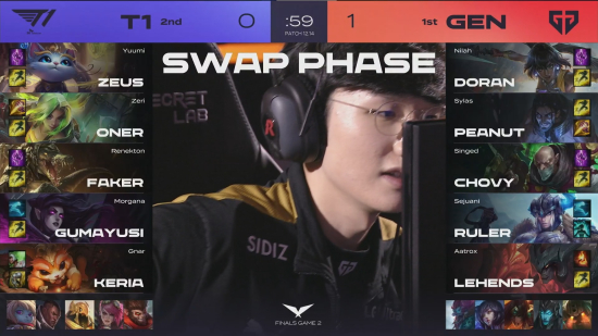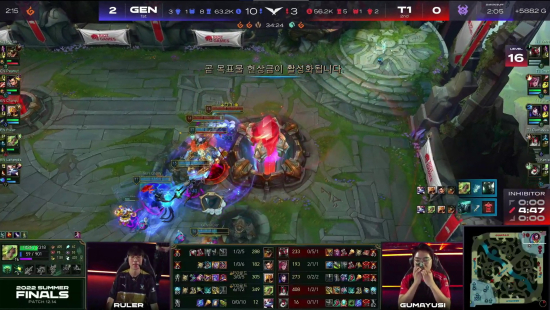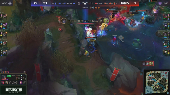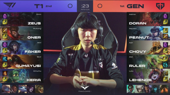 ¶óÀ̾ù °ÔÀÓÁî(ÀÌÇÏ ¶óÀ̾ù) ¡®¸®±× ¿Àºê ·¹Àüµå(League of Legends, ÀÌÇÏ LoL)¡¯ ±¹³» Á¤±Ô ¸®±× ¡®2022 LoL èÇǾ𽺠ÄÚ¸®¾Æ(ÀÌÇÏ LCK)¡¯ ¼¸Ó °á½ÂÀü¿¡¼ Gen.G e½ºÆ÷Ã÷°¡ T1À» 3:0À¸·Î ²ª°í ¿ì½ÂÇß´Ù.