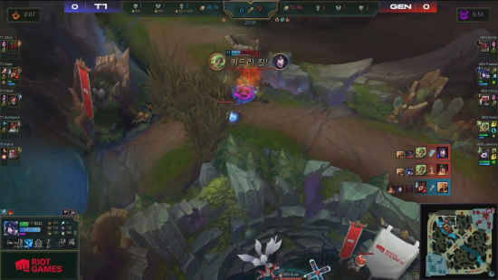 ÀÌÈÄ 27ºÐ´ë ³»¼Å ³²ÀÛÀ» µÎ°í ¹ú¾îÁø ÇÑŸ ÀüÅõ´Â 'Gumayusi' À̹ÎÇü ¼±¼ö°¡ 'Lehends' ¼Õ½Ã¿ì ¼±¼ö¸¦ óġÇϸç T1ÀÌ À¯¸®ÇÏ°Ô °³¸·ÇßÀ¸³ª, 'Ruler' ¹ÚÀçÇõ ¼±¼ö°¡ Äõµå¶ó ųÀ» ±â·ÏÇÏ¸ç ¿ÀÈ÷·Á Á¨Áö°¡ ´õ À¯¸®ÇÑ °íÁö¸¦ Â÷ÁöÇÏ°í º»°ÝÀûÀÎ ¹Ý°Ý¿¡ ³ª¼±â ½ÃÀÛÇß´Ù.