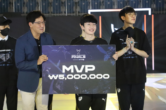 LCK ¼¸Ó ÆÄÀ̳ΠMVP´Â 'Peanut' ÇÑ¿ÕÈ£ ¼±¼ö°¡ ¼±Á¤µÆ´Ù. ÇÑ¿ÕÈ£ ¼±¼ö´Â "'Ruler' ¹ÚÀçÇõ ¼±¼ö°¡ ¹ÞÀ» °Å·Î »ý°¢ÇØ ÃàÇÏÇØÁÙ »ý°¢¸¸ ÇßÁö ³»°¡ MVP·Î »ÌÈúÁÙÀº ¸ô¶ú´Ù"¶ó¸ç, "¿ì½Â¿¡ À̾î MVP¿¡µµ ¼±Á¤µÇ¸ç À¯´ÏÅ©ÇÑ ÆÈÂî±îÁö ¾ò°Ô µÅ ³Ê¹« ±â»Ú´Ù"¶ó°í ¼Ò°¨À» ¹àÇû´Ù.