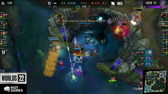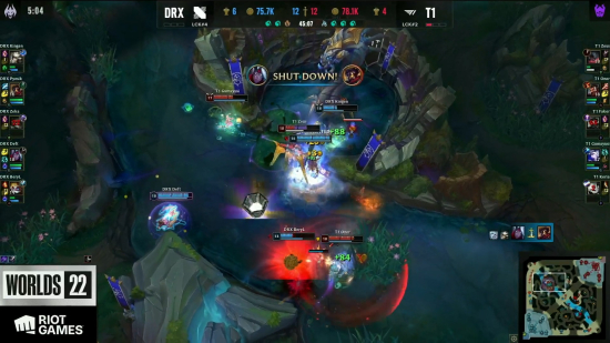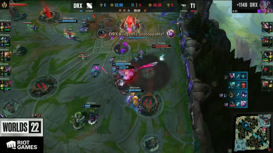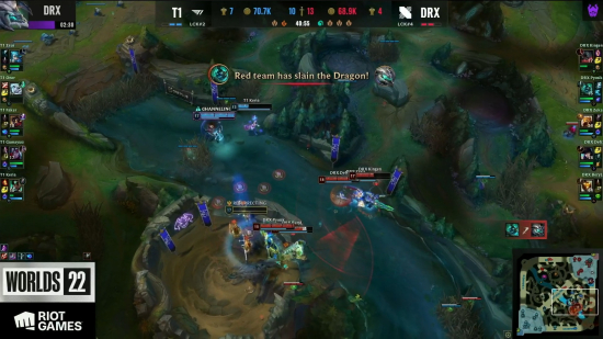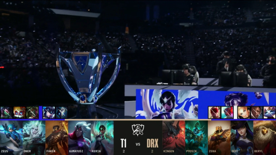 ¶óÀ̾ù °ÔÀÓÁî ¡®¸®±× ¿Àºê ·¹Àüµå(League of Legends, ÀÌÇÏ LoL)¡¯ ±¹Á¦ ¸®±× ´ëÇ×Àü ¡®2022 LoL ¿ùµå èÇǾð½Ê(World Championship, ÀÌÇÏ ¿ùÁî)' °á½ÂÀü¿¡¼ DRX°¡ T1À» ²ª°í ¿ì½ÂÇß´Ù.