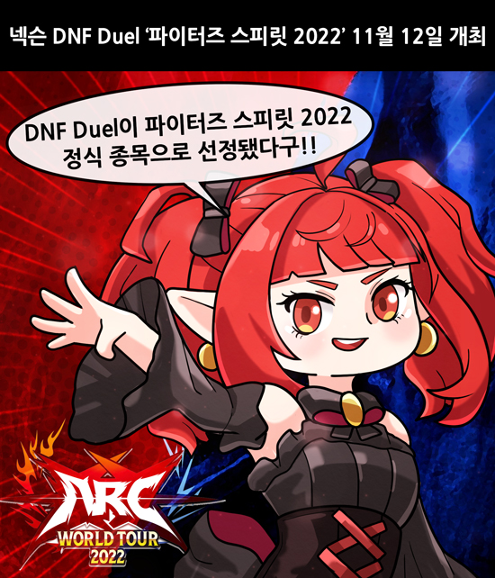 ³Ø½¼ÀÌ ÀÚ»ç ´ëÀü°ÝÅõ °ÔÀÓ ¡®DNF Duel¡¯ e½ºÆ÷Ã÷ ´ëȸ¸¦ °³ÃÖÇÑ´Ù. ¾ÆÅ©½Ã½ºÅÛ¿÷½º ±Û·Î¹ú °ÝÅõ°ÔÀÓ Åä³Ê¸ÕÆ® ´ëȸ ¡®¾ÆÅ© ¿ùµå Åõ¾î(ARC WORLD TOUR) 2022¡¯ °ø½Ä ¿ÀÇÁ¶óÀÎ ¿¹¼± ´ëȸ¸¦ ÅëÇØ¼´Ù. 11¿ù 12Àϰú 13ÀÏ ¿î¿µÇÏ´Â ¡®ÆÄÀÌÅÍÁî ½ºÇǸ´(Fighters SPIRIT) 2022¡¯ Á¤½Ä Á¾¸ñÀ¸·Î ¼±Á¤µÆ´Ù.