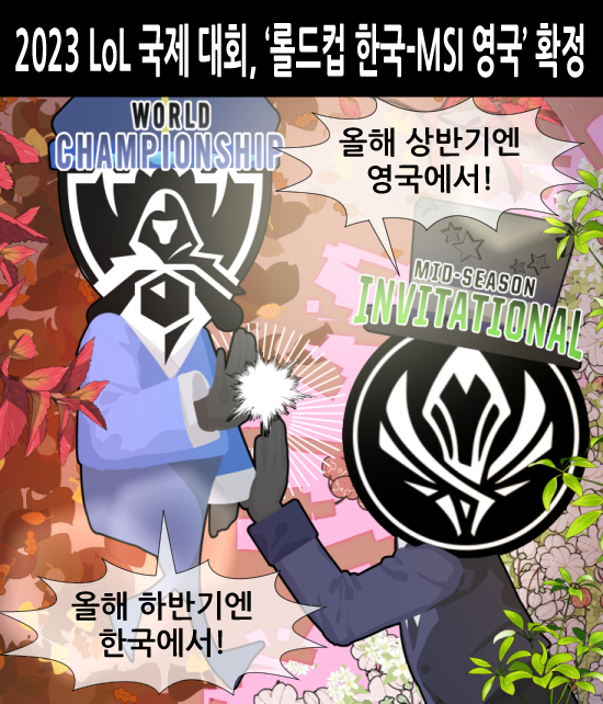 ¶óÀ̾ù °ÔÀÓÁî(ÀÌÇÏ ¶óÀ̾ù)°¡ 2023³â ¡®¸®±× ¿Àºê ·¹Àüµå(League of Legends, ÀÌÇÏ LoL)¡¯ ÇÑ ÇØ e½ºÆ÷Ã÷¸¦ ¸¶¹«¸®ÇÏ´Â ¡®LoL ¿ùµå èÇǾð½Ê(World Championship, ÀÌÇÏ ·ÑµåÄÅ)¡¯¸¦ Çѱ¹¿¡¼­ °³ÃÖÇÑ´Ù. ½ºÇÁ¸µ ½ÃÁðÀÌ ³¡³­ ÈÄ °³ÃÖÇÏ´Â ¡®¹Ìµå ½ÃÁð ÀκñÅ×À̼ųÎ(Mid-Season Invitational, ÀÌÇÏ MSI)¡¯Àº ¿µ±¹ ·±´ø °³ÃÖ´Ù.
