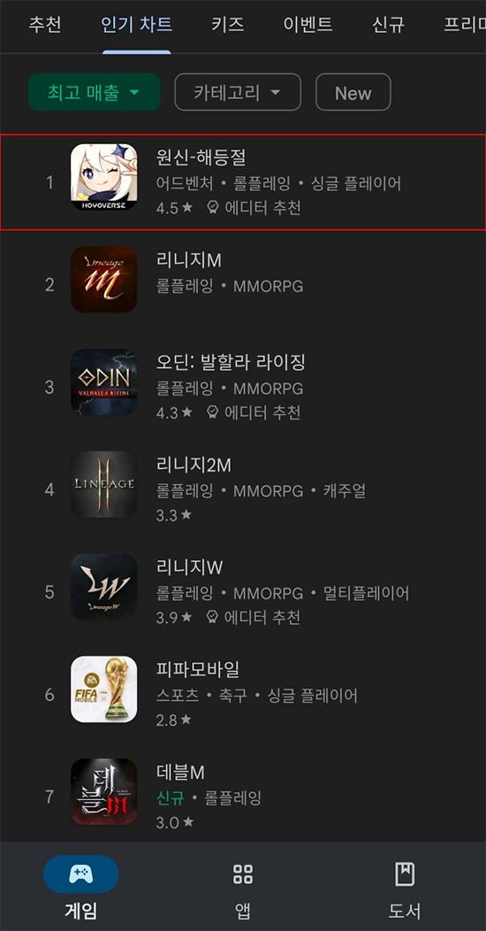 È£¿ä¹ö½º ¿ÀÇ¿ùµå ¾×¼Ç RPG ¡®¿ø½Å¡¯ÀÌ ±¹³» ±¸±Û Ç÷¹ÀÌ ½ºÅä¾î(ÀÌÇÏ ±¸±Û) ÃÖ°í ¸ÅÃâ 1À§¿¡ ¿Ã¶ú´Ù. 2¿ù 7ÀÏ Àαâ ij¸¯ÅÍ ¡®È£µÎ¡¯¿Í ¡®¾ß¶õ¡¯ º¹°¢ ¾÷µ¥ÀÌÆ® ÀÌÈÄ ¸ÅÃâ ¼øÀ§°¡ ¹Ýµî, 2¿ù 12ÀÏ ±âÁØ ±¸±Û ¸ÅÃâ 1À§¸¦ ±â·ÏÇß´Ù. 2020³â 9¿ù 28ÀÏ ±Û·Î¹ú Ãâ½Ã ÈÄ 868ÀÏ ¸¸ÀÌ´Ù.