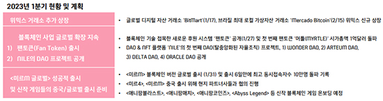 ƯÈ÷ NFT(´ëü ºÒ°¡´É ÅäÅ«)¿Í DAO(Å»Áß¾ÓÈ­ ÀÚÀ²Á¶Á÷)¸¦ °áÇÕÇÑ Ç÷§Æû ¡®³ªÀÏ¡¯, °ÔÀÓ ÅäÅ« ±â¹Ý ±ÝÀ¶ ¼­ºñ½º ¡®À§¹Í½ºÆÄÀÌ¡¯ µîÀ¸·Î À§¹Í½º »ýŰ踦 °íµµÈ­Çϸ鼭 À§¹Í½º Ç÷§Æû ¼öÀÔ 25%´Â À§¹Í½º ¸ÅÀÔ°ú ¼Ò°¢¿¡ »ç¿ëÇØ »ýÅÂ°è ¾ÈÁ¤¼ºÀ» È®º¸ÇÏ·Á´Â Àü·«µµ ¹ßÇ¥Çß´Ù.