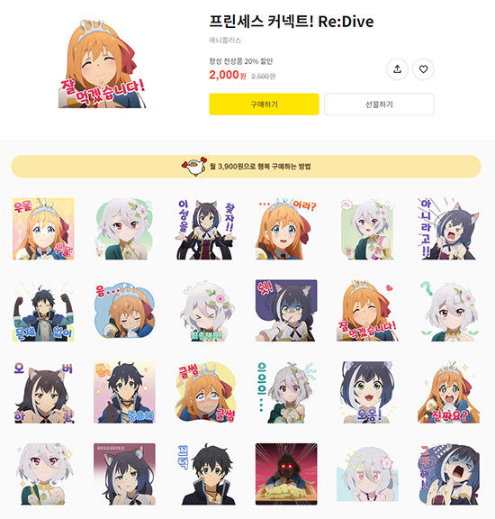 Áö³ ¼ö³â°£ °ÔÀÓ °ü·Ã īī¿ÀÅå À̸ðƼÄÜÀº »çÀü ¿¹¾à µî À̺¥Æ®¸¦ ÅëÇØ ±â°£ ÇÑÁ¤(30ÀÏ)À¸·Î ¹èÆ÷µÆ°í īī¿À À̸ðƼÄܼ¥À» ÅëÇØ ÆÇ¸ÅµÇÁö´Â ¾Ê¾Ò´Ù. °ÔÀÓ°ú °°Àº IP(Áö½ÄÀç»ê±Ç)¸¦ Ȱ¿ëÇÑ ¾Ö´Ï¸ÞÀ̼ÇÀ̳ª ij¸¯ÅÍ ºê·£µå À̸ðƼÄÜÀº ÆÇ¸ÅµÇ±âµµ Çß´Ù. ½ÇÁ¦·Î īī¿À°ÔÀÓÁî°¡ ¼ºñ½º ÁßÀÎ ¼öÁýÇü RPG ¡®ÇÁ¸°¼¼½º Ä¿³ØÆ®! Re:Dive¡¯´Â ¾Ö´Ï¸ÞÀÌ¼Ç À̸ðƼÄÜÀ¸·Î ÆÇ¸Å ÁßÀÌ´Ù.