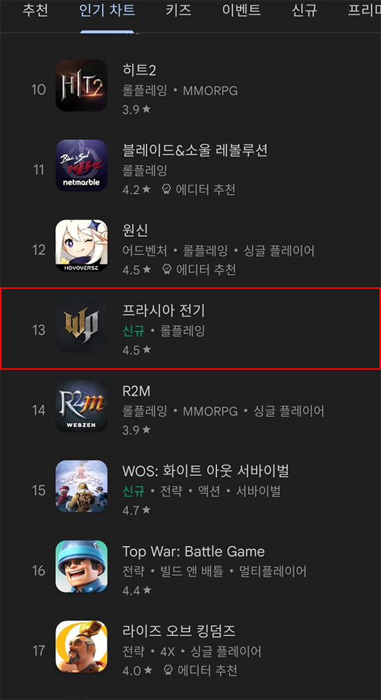 3¿ù 28ÀÏ ½ÃÀÛÇÑ »çÀü ´Ù¿î·Îµå¸¸À¸·Î ¾ÖÇà Àαâ 1À§, ±¸±Û Àαâ 1À§¿¡ ¿À¸¥ ¡®ÇÁ¶ó½Ã¾Æ Àü±â¡¯´Â 3¿ù 30ÀÏ Á¤½Ä Ãâ½Ã ´çÀÏ ¾ÖÇà ¸ÅÃâ 1À§¿¡ ¿Ã¶ú°í ÇÏ·ç ¸¸ÀÎ 3¿ù 31ÀÏ ±¸±Û ¸ÅÃâ 13À§¿¡ ÀÔ¼ºÇß´Ù. ±¸±Û À¯Àú Æò°¡´Â 5Á¡ ¸¸Á¡¿¡ 4.5Á¡À¸·Î È£ÆòÀ̶ó ÇâÈÄ ¸ÅÃâÀÌ ´õ ¿À¸¦ °¡´É¼ºÀÌ ÃæºÐÇÏ´Ù.
