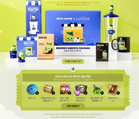 ¡®¸ðÄÚÄÚ ¹Ù¸®½ºÅ¸ ÆÐŰÁö¡¯´Â ¡®¸ðÄÚÄÚ ¹Ù¸®½ºÅ¸ ÄݵåÄÅ¡¯°ú ¡®¸ðÄÚÄÚ ¹Ù¸®½ºÅ¸ ¸Ó±×ÄÅ¡¯, À̵ð¾ßÄ¿ÇÇ Á¦Ç°°ú Àü¿ë ÄíÆù µîÀ¸·Î ±¸¼ºµÆ´Ù. Àü¿ë ÄíÆùÀº ¡®·Î½ºÆ®¾ÆÅ©¡¯¿¡¼ Ä«µå ÆÑ¡¤Æä¿Â¡¤Àü¼³ È£°¨µµ ¼±Åà »óÀÚ µî °¢Á¾ °ÔÀÓ ¾ÆÀÌÅÛÀ¸·Î ±³È¯ °¡´ÉÇÏ´Ù.
