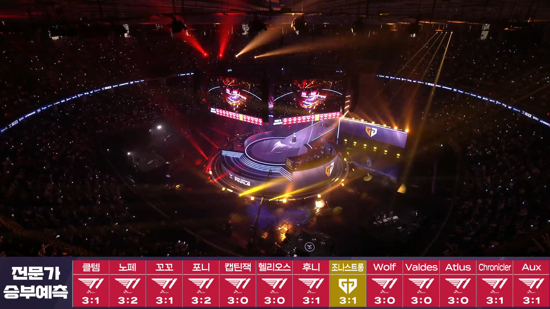 Áß°èÁø »çÀü ½ÂºÎ ¿¹Ãø¿¡¼´Â 13¸í Áß 12¸íÀÌ T1 ¿ì¼¼¸¦, 1¸íÀÌ Á¨Áö ¿ì¼¼¸¦ Á¡ÃÆ´Ù. T1ÀÌ 3:0À¸·Î ¿ì½ÂÇÑ´Ù´Â °üÃø°ú 3:1À¸·Î ¿ì½ÂÇÑ´Ù´Â °üÃøÀÌ µÑ ´Ù 5¸íÀ¸·Î µ¿·üÀ» ÀÌ·ðÀ¸¸ç, T1 3:2 ¿ì½ÂÀ» Á¡Ä£ Áß°èÁøÀº 2¸íÀ̾ú´Ù. Á¨Áö ¿ì½ÂÀ» Á¡Ä£ Áß°èÁøÀº 3:1À» ¿¹ÃøÇß´Ù. ÆÒ ½ÂºÎ ¿¹Ãø¿¡¼´Â ¾ÆÇÁ¸®Ä« TV¿¡¼ 74:26, ³×À̹ö¿¡¼ 87:13À¸·Î T1ÀÌ ¾Õ¼¹´Ù.
