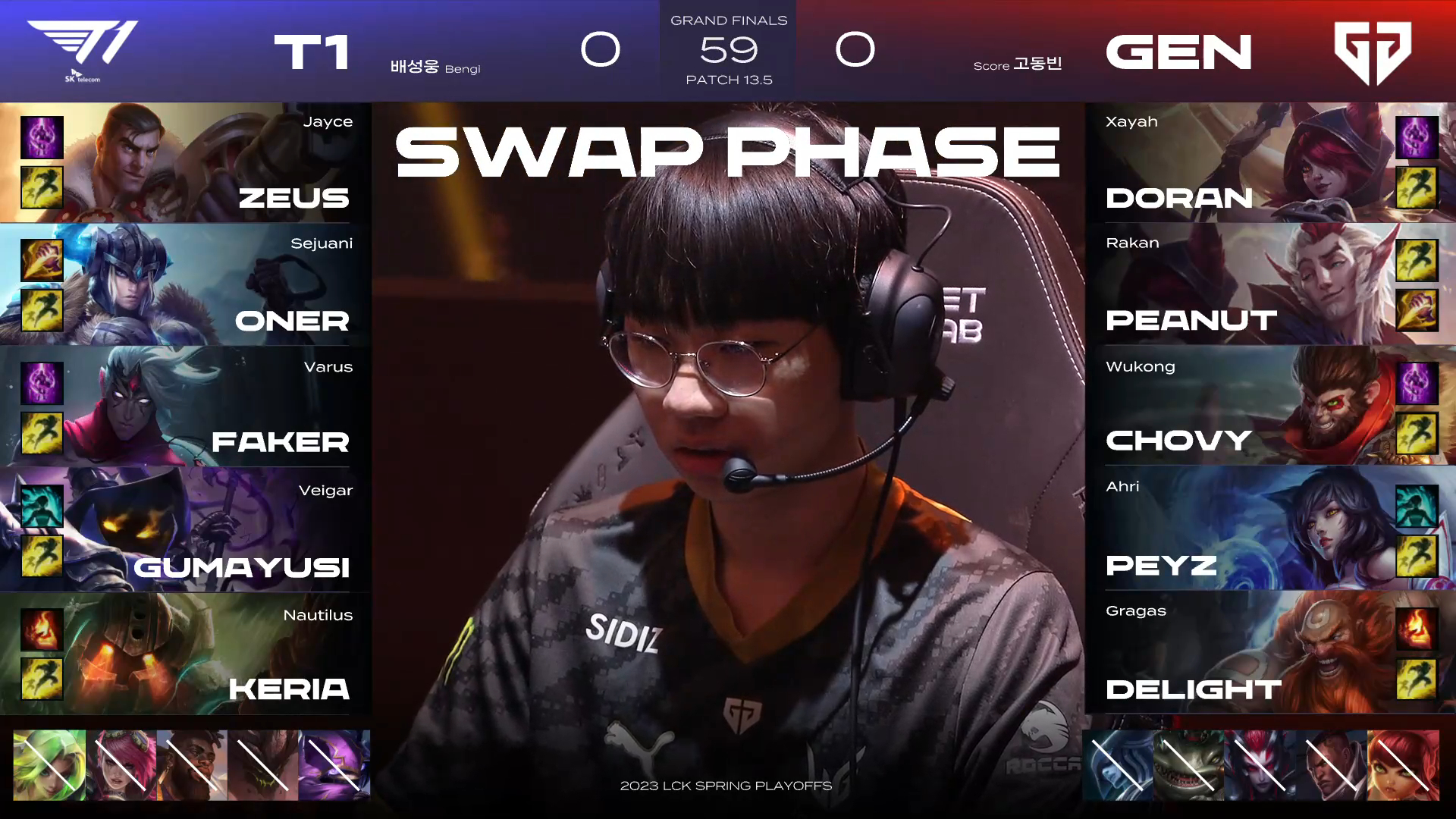 T1Àº ž ¶óÀ̳ʷΠ'Zeus' ÃÖ¿ìÁ¦ ¼±¼ö, Á¤±Û »ç³É²ÛÀ¸·Î 'Oner' ¹®ÇöÁØ ¼±¼ö, ¹Ìµå ¶óÀ̳ʷΠ'Faker' ÀÌ»óÇõ ¼±¼ö, ¹ÙÅÒ ¶óÀ̳ʷΠ'Gumayusi' À̹ÎÇü ¼±¼ö, ¼Æ÷ÅÍ·Î 'Keria' ·ù¹Î¼® ¼±¼ö°¡, Á¨Áö´Â ž ¶óÀ̳ʷΠ'Doran' ÃÖÇöÁØ ¼±¼ö, Á¤±Û »ç³É²ÛÀ¸·Î 'Peanut' ÇÑ¿ÕÈ£ ¼±¼ö, ¹Ìµå ¶óÀ̳ʷΠ'Chovy' Á¤ÁöÈÆ ¼±¼ö, ¹ÙÅÒ ¶óÀ̳ʷΠ'Payz' ±è¼öȯ ¼±¼ö, ¼Æ÷ÅÍ·Î 'Delight' À¯È¯Áß ¼±¼ö°¡ ÃâÀüÇß´Ù.