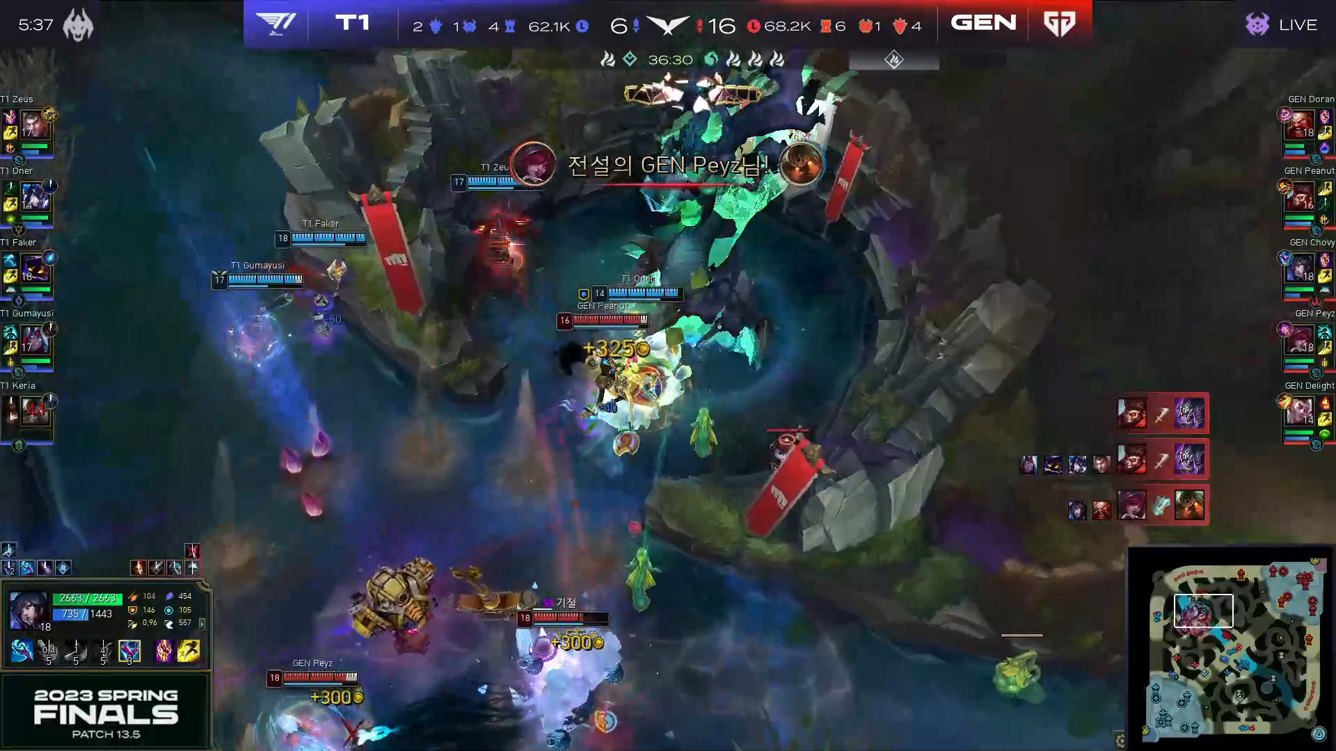 ¼Ò±Ô¸ð ±³ÀüÀ» ÅëÇØ ų Ä«¿îÆ®¿Í °ñµå ȹµæ ¸ðµÎ Á¨Áö°¡ ¾Õ¼´Â »óȲ¿¡¼µµ T1Àº 29ºÐ ±³Àü¿¡¼ Á¶±Ý¾¿ À̵æÀ» °ÅµÎ¸ç Á¨Áö¸¦ ¦i¾Æ°¬´Ù. Àß ¼ºÀåÇÑ Â¡Å©½º¿Í º£À̰¡°¡ ÀûÀçÀû¼Ò¿¡ ±Ã±Ø±â¸¦ Ȱ¿ëÇØ À¯ÀǹÌÇÑ °á°ú¸¦ ¸¸µé¾î³»¸ç 22ºÐ°æ ³»¼Å ³²ÀÛÀ» È®º¸ÇÏ¸ç °á±¹ ¿ªÀü¿¡ ¼º°ø, Àû±ØÀûÀ¸·Î Á¨Áö¸¦ ¸ô¾ÆÄ¡¸ç 28ºÐ°æ ù ¼¼Æ® ½Â¸®¸¦ È®º¸Çß´Ù.