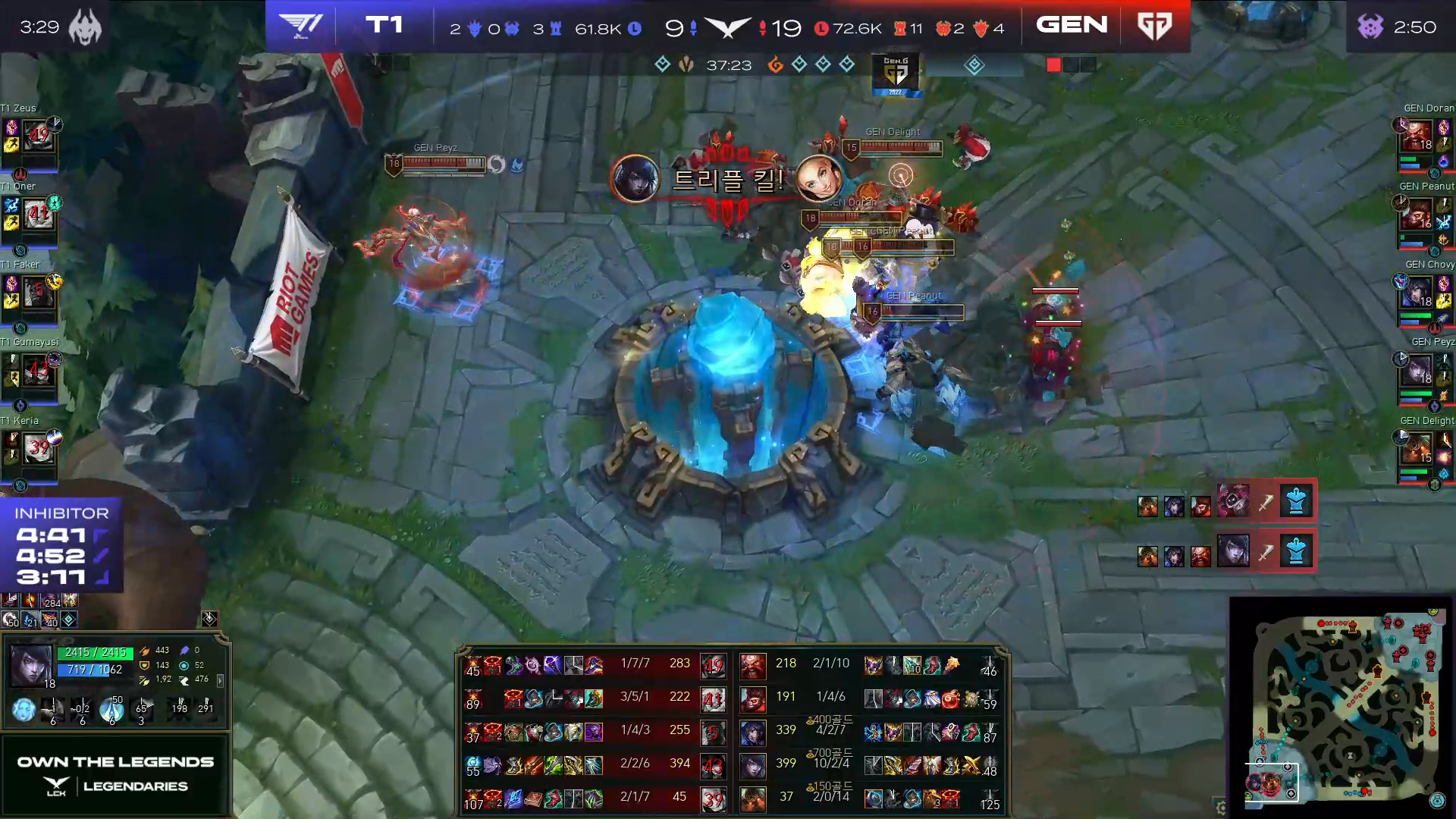 T1Àº 19ºÐ°æ Á¨Áö°¡ µå·¡°ïÀ» È®º¸ÇÑ Á÷ÈÄ ¹ú¾îÁø ±³Àü¿¡¼ºÎÅÍ ¹Ý°ÝÀ» ½ÃÀ۵ƴÙ. ¼ø°£ÀûÀ¸·Î ų Ä«¿îÆ®¸¦ ´Ã·ÈÀ½Àº ¹°·Ð ÄÉÀÌÆ²¸° µî ÇÙ½É Ã¨ÇǾðÀÌ ¾ÆÀÌÅÛÀ» ¸ÂÃâ ¼ö ÀÖ°Ô µÇ¸ç Á¶ÇÕ Àüü È·ÂÀÌ Å©°Ô ¿Ã¶ú´Ù. ±×·¯³ª 26ºÐ ³»¼Å ³²ÀÛÀ» ³õ°í ¹ú¾îÁø ÇÑŸ ±³Àü¿¡¼ ÆÐ¹èÇÏ¸ç ±â¼¼°¡ ²ª¿´°í, ÀÌÈÄ ¿ÀºêÁ§Æ® °æÀï°ú ¼Ò±Ô¸ð ±³Àü ¸ðµÎ Á¨Áö°¡ ¿ìÀ§¸¦ Â÷ÁöÇÏ¸ç °æ±â°¡ º»°ÝÀûÀ¸·Î ±â¿ï¾îÁö±â ½ÃÀÛÇß´Ù.