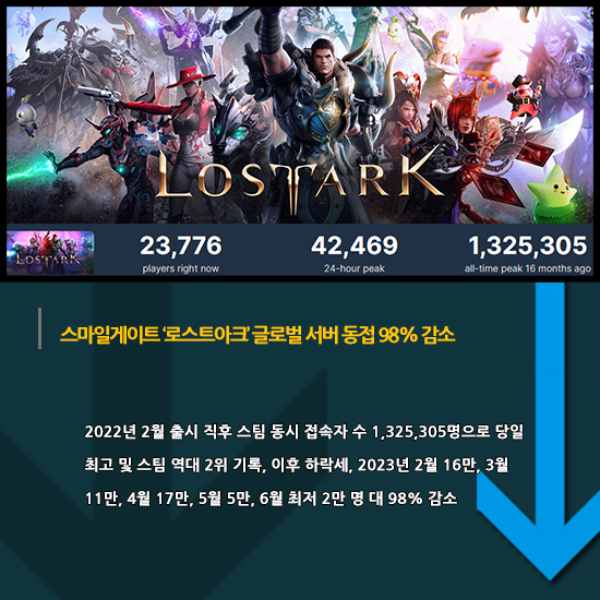 [°ÔÀÓ ¸¸Æò] ·Î½ºÆ®¾ÆÅ© ±Û·Î¹ú¿¡ ¹«½¼ ÀÏÀÌ, 1³â ¸¸¿¡ µ¿Á¢ 98% °¨..