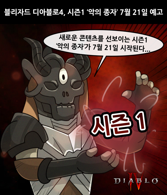 ÇÑ ¾÷°è °ü°èÀÚ´Â ¡°6¿ù 6ÀÏ Ãâ½Ã ÈÄ ¼¼°èÀûÀÎ Àα⸦ ¾ò°í ÀÖ´Â ¡®µð¾Æºí·Î4¡¯°¡ »õ·Î¿î ÄÜÅÙÃ÷¸¦ ¼±º¸ÀÌ´Â ½ÃÁð1 ¡®¾ÇÀÇ Á¾ÀÚ¡¯¸¦ ½ÃÀÛÀ» 7¿ù 21ÀÏ·Î ¿¹°íÇß´Ù¡±¶ó¸ç ¡°ÀüÁ÷ »çÁ¦ ¡®ÄÚ¸£¸óµå¡¯¿Í ÇÔ²² ¡®¾ÇÀÇ Á¾ÀÚ¡¯ È®»êÀ» ÀúÁöÇÏ´Â À̾߱â¿Í ½Å±Ô Àåºñ ¡®¾ÇÀÇ ½ÉÀ塯, µµÀü °úÁ¦ ¡®½ÃÁð ¿©Á¤¡¯À¸·Î ±¸¼ºÇߴµ¥, À¯Àúµé·ÎºÎÅÍ ¾î¶² Æò°¡¸¦ ¹ÞÀ»Áö ±ÍÃß°¡ ÁÖ¸ñµÈ´Ù¡±¶ó°í ¸»Çß´Ù.