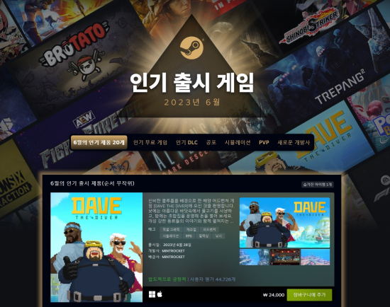 ÇÑÆí 'µ¥ÀÌºê ´õ ´ÙÀ̹ö'´Â ¹ëºê°¡ ¼±Á¤ÇÑ 2023³â 6¿ù ÃÖ°í Àα⠰ÔÀÓ 20À§¿¡ µé±âµµ Çß´Ù. ÇØ´ç ¿ù¿¡ Ãâ½ÃµÈ °ÔÀÓ Áß °¡Àå ³ôÀº ¸ÅÃâÀ» ±â·ÏÇÑ °ÔÀÓ 20°³¸¦ ¹«ÀÛÀ§ ¼ø¼·Î ³ªÇÑ ¸í´ÜÀ¸·Î, 'µ¥ÀÌºê ´õ ´ÙÀ̹ö'´Â '½ºÆ®¸®Æ® ÆÄÀÌÅÍ 6', '¼¼°è¼öÀÇ ¹Ì±Ã HD ¸®¸¶½ºÅÍ', 'ÆÄÅ© ºñ¿æµå' µî°ú ÇÔ²² ¸ñ·Ï¿¡ Æ÷ÇԵƴÙ.