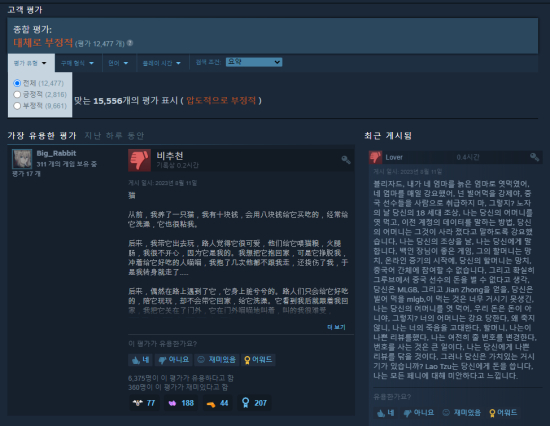 Áß±¹ À¯ÀúµéÀÌ ºÎÁ¤ÀûÀÎ Æò°¡¸¦ ´ë·®À¸·Î °Ô½ÃÇÑ Á¡µµ Æò°¡¿¡ ¿µÇâÀ» ¹ÌÃÆ´Ù. ¾×ƼºñÀü ºí¸®Àڵ尡 Áß±¹¿¡¼ ö¼öÇÑ Á¡À» ºñÆÇÇÏ´Â ³»¿ëÀÌ ÀûÁö ¾Ê¾Ò´Ù. Áß±¹ ÃÖ´ë °ÔÀÓ Ä¿¹Â´ÏƼÀÎ NGA¿¡´Â ÇÑ À¯Àú°¡ '¿À¹ö¿öÄ¡ 2'¿¡ ±àÁ¤ÀûÀÎ Æò°¡¸¦ ³²°å´Ù°¡ ´Ù¸¥ Áß±¹ÀÎ À¯Àúµé¿¡°Ô ºñ³¼º ¸Þ¼¼Áö¸¦ ¹Þ¾Ò´Ù¸ç ÀÌ·¯ÇÑ ÇàŸ¦ ºñÆÇÇÏ´Â ±ÛÀ» ³²±â±âµµ Çß´Ù.