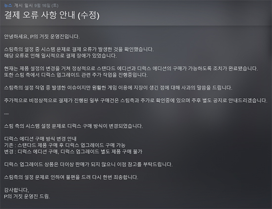 ½ÇÁ¦·Î ±¹³»¿Ü °ÔÀÓ Ä¿¹Â´ÏƼ¿¡¼´Â ¡®PÀÇ °ÅÁþ¡¯ µð·°½º ¿¡µð¼ÇÀ» 1¸¸ ¿ø¿¡ ±¸¸ÅÇϰí Ç÷¹ÀÌ ÁßÀ̶ó´Â À̾߱Ⱑ ³ª¿Ô´Ù. ½ºÅÄ´Ùµå ¿¡µð¼Ç º¸À¯ À¯Àú´Â ¡®µð·°½º ¾÷±×·¹À̵塯 ±¸¸Å ½Ã ÀÌ¹Ì ÀÖ´Â ÄÜÅÙÃ÷¶ó´Â ¿À·ù ¸Þ½ÃÁö¸¦ È®ÀÎÇÒ ¼ö ÀÖ¾ú´Âµ¥, ¡®µð·°½º ¾÷±×·¹À̵塯¿¡ °ÔÀÓ º»ÆíÀÌ Æ÷ÇÔµÈ »óȲÀ¸·Î ÆÄ¾ÇµÈ´Ù.