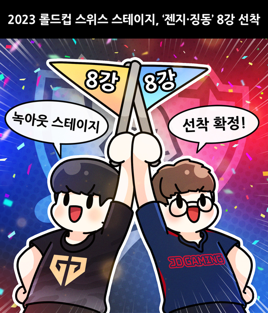 ¶óÀ̾ù °ÔÀÓÁî ¡®¸®±× ¿Àºê ·¹Àüµå(LoL)¡¯ Àü ¼¼°è ÇÑ ÇØ e½ºÆ÷Ã÷¸¦ ¸¶¹«¸®ÇÏ´Â ¡®2023 LoL ¿ùµå èÇǾð½Ê(World Championship, ÀÌÇÏ ·ÑµåÄÅ)¡¯ ½ºÀ§½º ½ºÅ×ÀÌÁö¿¡¼ LCK(Çѱ¹) Á¨Áö e½ºÆ÷Ã÷(ÀÌÇÏ Á¨Áö)¿Í LPL(Áß±¹) ¡µ¿ ÀÎÅÚ(ÀÌÇÏ Â¡µ¿)ÀÌ ³ì¾Æ¿ô ½ºÅ×ÀÌÁö(8°)¿¡ ¼±ÂøÇß´Ù. 10¿ù 29ÀϱîÁö °æ±â¸¦ ÅëÇØ ³ª¸ÓÁö 6ÆÀÀÌ °¡·ÁÁø´Ù.
