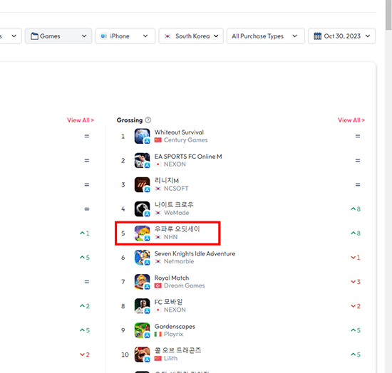 NHN ½ÅÀÛ Ä÷º¼Ç SNG ¡®¿ìÆÄ·ç ¿Àµ÷¼¼ÀÌ¡¯°¡ ¾ÖÇà ¾Û½ºÅä¾î(ÀÌÇÏ ¾ÖÇÃ) ¸ÅÃâ 5À§¿¡ ¿Ã¶ú´Ù. ¿øÀÛ °¨¼ºÀº »ì¸®¸é¼ »õ·Î¿òÀ» ´õÇÑ ÄÜÅÙÃ÷·Î ÀÌ·ï³½ ¼º°ú´Ù. Áö³ 10¿ù 5ÀÏ Ãâ½Ã ÈÄ À¯Àú ¼ö°¡ ²ÙÁØÈ÷ Áõ°¡Çß°í 10¿ù 20ÀÏ¿¡´Â ¾ÖÇà Àαâ 1À§¿¡ ¿À¸£¸é¼ ÈïÇàÀ» ¿¹°íÇÑ ¹Ù ÀÖ´Ù.