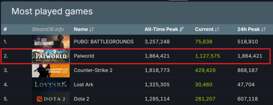 ¸¹ÀÌ ÆÇ¸ÅµÈ ¸¸Å µ¿½Ã Á¢¼ÓÀÚ ¼öµµ ¸¹´Ù. 1¿ù 24ÀÏ ¿ÀÈÄ 1½Ã ±âÁØ 'ÆÓ¿ùµå' ÃÖ´ë µ¿½ÃÁ¢¼ÓÀÚ ¼ö´Â 1,864,421¸íÀ¸·Î, ¿ª´ë ½ºÆÀ µ¿½ÃÁ¢¼ÓÀÚ ¼ö ¼øÀ§¿¡¼ 2À§¿¡ ÇØ´çÇÏ´Â ±â·ÏÀÌ´Ù. 1À§ÀÎ Å©·¡ÇÁÅæ 'PUBG: ¹èƲ±×¶ó¿îµå'°¡ º¸À¯ÇÑ 3,257,248¸í ±â·Ï¿¡´Â ¹ÌÄ¡Áö ¸øÇÏ´Â ¼öÄ¡À̳ª, ÈïÇ༼°¡ À¯ÁöµÈ´Ù¸é 1À§¸¦ Â÷ÁöÇÏ°Ô µÉ °¡´É¼ºµµ ÀÖ´Ù.