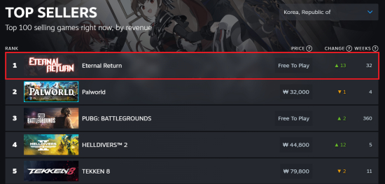 ´Ôºí´º·± 'ÀÌÅͳΠ¸®ÅÏ'ÀÌ 1.15 ¾÷µ¥ÀÌÆ® ÁøÇà ÈÄ ±Û·Î¹ú PC °ÔÀÌ¹Ö Ç÷§Æû ½ºÆÀ(Steam)¿¡¼ Çѱ¹ Áö¿ª ¸ÅÃâ 1À§¸¦ ±â·ÏÇß´Ù. ±Û·Î¹ú ¼øÀ§¿¡¼´Â 35À§¿¡ ÇØ´çÇÏ´Â ±â·ÏÀÌ´Ù.