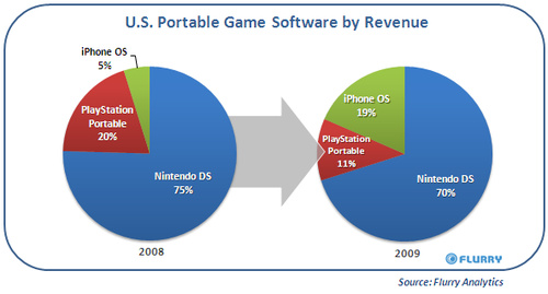 ½ÃÀåÁ¶»ç¾÷üÀÎ ÇÁ·¯¸®(Flurry)´Â ÃÖ±Ù ¿¬±¸ ÀڷḦ ÅëÇØ ¾ÆÀÌÆùÀÇ °ÔÀÓ ½ÃÀåÁ¡À¯À²ÀÌ Áõ°¡, PSP¸¦ Á¦Ä¡°í 2À§·Î µµ¾àÇß´Ù´Â ³»¿ëÀ» ¹ßÇ¥Çß´Ù.