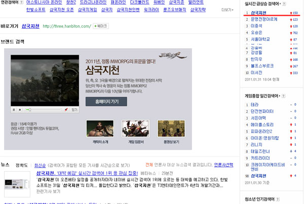 ÇöÀç ¡®»ï±¹Áöõ¡¯Àº ¿ÀÀüºÎÅÍ ³×À̹ö °Ë»ö ¼øÀ§¿¡¼ 1À§¿¡ ·©Å©µÈ ÀÌÈÄ ²ÙÁØÈ÷ ¼øÀ§¸¦ À¯ÁöÇϰí ÀÖ¾î À¯ÀúµéÀÇ ¹ÝÀÀÀÌ ¶ß°Ì´Ù´Â °ÍÀ» ÀÔÁõÇϰí ÀÖ´Ù.