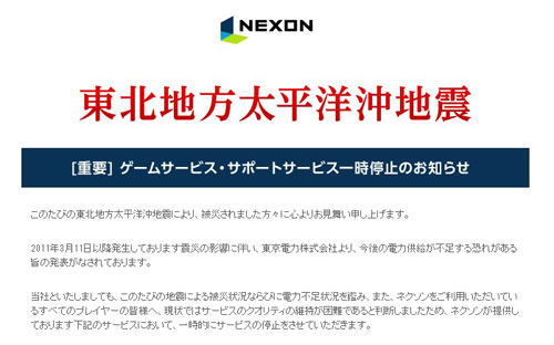 ÀϺ» ´ëÁöÁøÀ¸·Î ÀÎÇØ ¿ì·Á°¡ µÆ´ø ±¹³» °ÔÀÓ»çµéÀÇ ¼­ºñ½º°¡ Áß´Ü ¹× ÀÓ½ÃÈÞ¹«¿¡ µé¾î°¬´Ù.