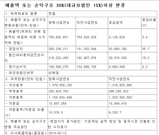 ȸ»ç ÃøÀº ¿µ¾÷ÀÌÀÍ Áõ°¡ ÀÌÀ¯¿¡ ´ëÇØ '±âÁ¸ °ÔÀÓ ½ÇÀû Çâ»ó ¹× Áß±¹½ÃÀå ÁøÃâ·Î ÀÎÇÑ ¼öÀÍ Áõ°¡'·Î ºÐ¼®Çß´Ù.