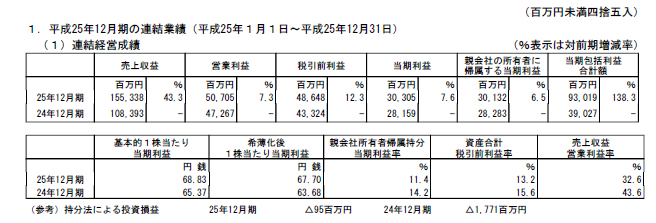 ³Ø½¼ÀÇ 2013³â ¿¬ ¸ÅÃâÀº Àü³â ´ëºñ 43% »ó½ÂÇÑ ¾à 1,553¾ï ¿£(ÇÑÈ­ ¾à 1Á¶ 6õ¾ï ¿ø)À» ±â·ÏÇß´Ù. °°Àº ±â°£ ¿µ¾÷ ÀÌÀÍÀº 507¾ï ¿£(¾à 5,439¾ï ¿ø), ´ç±â¼øÀÌÀÍÀº 301¾ï¿£(¾à 3,175¾ï ¿ø)À¸·Î °¢°¢ 7% Áõ°¡Çß´Ù.