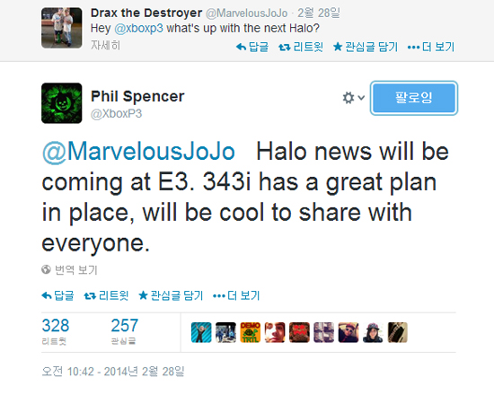 ¸ÕÀú ¸¶ÀÌÅ©·Î¼ÒÇÁÆ®ÀÇ ÇÊ ½ºÆæ¼­ ºÎ»çÀåÀº ÀÚ½ÅÀÇ SNS¸¦ ÅëÇØ ±Û·Î¹ú È÷Æ®ÀÛ ¡®ÇìÀϷΡ¯ ½ÅÀÛ Á¤º¸¸¦ ¡®E3 2014¡¯ ¼îÄÉÀ̽º ÇöÀå¿¡¼­ °ø°³ÇÏ°Ú´Ù°í ¾Ë·È´Ù. ¿©±â¿¡ ±âÁ¸ °ø°³µÇ¾ú´ø ŸÀÌÆ²ÀÇ ½Å±Ô Á¤º¸¿Í ¹Ì¹ßÇ¥ ½ÅÀÛ °ø°³±îÁö dzºÎÇÑ ¶óÀξ÷À» ÀÚ¶ûÇÑ´Ù°í µ¡ºÙ¿©, PS4¿Í ºñ±³ÇØ ÁÖÃãÇϰí ÀÖ´Â Xbox ONEÀÇ ¡®¹ÝÀü¡¯À» º¸¿©ÁÙ ½ÃÁ¡À» ¿ÃÇØ E3·Î º¸°í ÀÖ´Ù.
