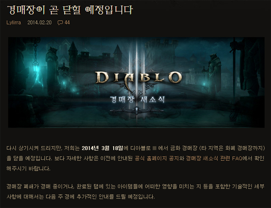ºí¸®ÀÚµå´Â ¡®µð¾Æºí·Î 3¡¯ °ø½Ä ȨÆäÀÌÁö¸¦ ÅëÇØ °æ¸ÅÀå FAQ¸¦ °ÔÀç, À¯Àúµé¿¡°Ô ´Ù½Ã ÇÑ ¹ø ¿µ±¸ Æó¼â¿Í °ü·ÃÇØ ¾È³» °øÁö¸¦ ¶ç¿î »óÅ´Ù. ¸ÕÀú Çѱ¹ ½Ã°¢À¸·Î ¿À´Â 18ÀÏ ¿ÀÀü 3½Ã °æ¸ÅÀåÀº ´ÝÈù´Ù. º°µµÀÇ ¼¹ö Á¡°Ë ¾øÀÌ ÁøÇàµÉ ¿¹Á¤À̸ç, ÇØ¿ÜÀÇ °æ¿ì Á¡°Ë ½Ã°£°ú °ãÃÄ ¿¹Á¤µÈ ½Ã°£º¸´Ù Á¶±Ý ´ÊÀ» ¼öµµ ÀÖ´Ù.