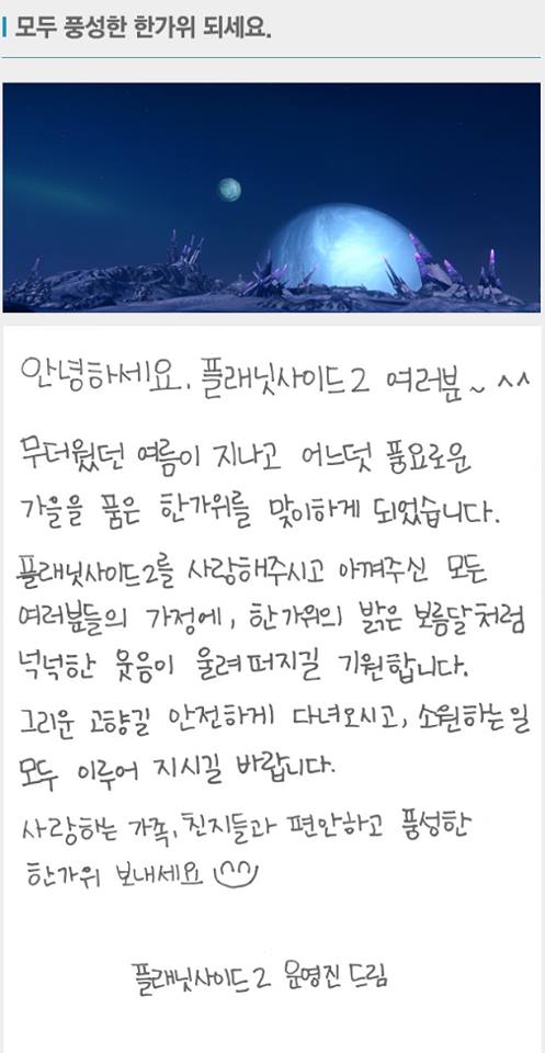 À½·Â ÆÈ¿ù º¸¸§À» ÀÏÄ´ ¹ÎÁ· ´ë¸íÀý Ãß¼® ´çÀÏÀÎ ¿À´Ã(8ÀÏ), °ÔÀÓ¾÷°è¿¡¼ ÆÒµéÀÇ ¼º¿ø¿¡ °¨»çÇÏ´Â À̹ÌÁö¸¦ ¼±º¸¿´´Ù. ÇѺ¹À» ÀÔÀº È«º¸¸ðµ¨À̳ª ´ëÇ¥ ij¸¯Å͸¦ Ȱ¿ëÇÑ À̹ÌÁö, ¿©±â¿¡ ȹÀ» Áß½ÃÇÑ Âª°í ±½Àº ¸Þ½ÃÁö±îÁö ¾÷°è ¶Ç´Â °ÔÀÓº° ÇѰ¡À§ ÃàÇÏ Àλ縦 Çѵ¥ ¸ð¾Æ ¼Ò°³ÇÑ´Ù.