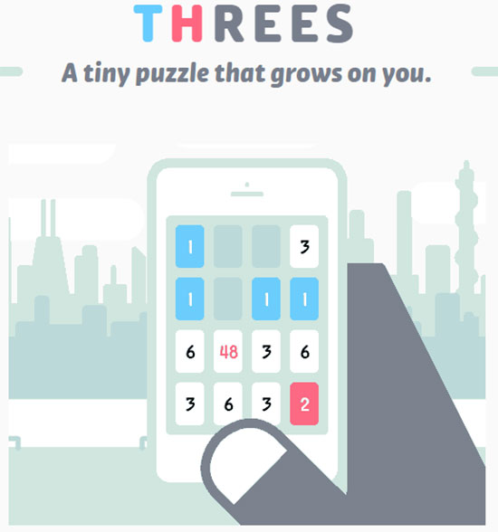 < Threes! >´Â ÀÎÁ¢ÇÑ ¼ýÀÚ Áß °°Àº ¼ýÀÚ¸¦ ¸ð¾Æ 3ÀÇ ¹è¼ö¸¦ ¸¸µé¾î ³ª°¡´Â °ÔÀÓÀÌ´Ù. µÎ ¸íÀÌ Á¦ÀÛÇÑ Àεð °ÔÀÓÀ¸·Î, ÀÛ³â 4¿ù ¾ÖÇà ¾Û½ºÅä¾î¿¡ Ãâ½ÃµÅ ´Ü¼øÇϸ鼵µ Áßµ¶¼º ÀÖ´Â ¹æ½ÄÀ¸·Î Àα⸦ ¸ð¾Ò´Ù. IGF(µ¶¸³ °ÔÀÓ Æä½ºÆ¼¹ú) 2014 ¹× 2014³â ¾ÖÇà ¾Û½ºÅä¾î ¿ÃÇØÀÇ ¾ÛÀ¸·Î ¼±Á¤µÈ ¹Ù ÀÖÀ¸¸ç, ÇöÀç´Â ¾Æ·ùÀÛ < 2048 >À» ºñ·ÔÇØ ºñ½ÁÇÑ ¹æ½Ä °ÔÀÓ¸¸ ¼ö¹é °³¿¡ ´ÞÇÑ´Ù.