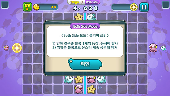 ¾çÂÊ ¶óÀÎÀÇ ¹°°í±â¸¦ ¹ß»çÇØ ¼öÆò, ¼öÁ÷, ´ë°¢¼±À¸·Î 3°³¸¦ ¸ÂÃç Áß¾ÓÀÇ ÇØ»ê¹°(?)µéÀ» ÅðÄ¡ÇØ ³ª°¡´Â °ÔÀÓ. ÁÂ¿ì ±³´ë·Î ¹ß»çÇÏ´Â ¡®½ÉÇá¯, ¾çÂÊ ¸ðµÎ¸¦ Á¶ÀÛÇÏ´Â ¡®º¸½º »çÀ̵塯 ¸ðµå°¡ ±³´ë·Î µîÀåÇÑ´Ù. ÀÌ·¸´Ù º¸´Ï ¡®Ä¿Ç÷ΠÁñ±â´Â °ÔÀÓ¡¯À» ÁÖ Ä³Ä¡ÇÁ·¹ÀÌÁî·Î ³»°Ç °Í Ä¡°í´Â ½ºÅ×ÀÌÁö ±¸¼ºÀÌ ¹¦ÇÏ´Ù. ¾î¶² ½ºÅ×ÀÌÁö´Â ¾çÂÊÀ» µ¿½Ã¿¡ ÁøÇàÇÏ´Ù, °©ÀÚ±â Á¿찡 µû·ÎÀÌ ¿òÁ÷ÀÌ´Ï µÑÀÌ Áñ±â´Ù°¡µµ °©ÀÚ±â È¥ÀÚ ÇÏ´Â ¸ðµå·Î ¹Ù²ï µíÇÑ È¥¶õÀÌ ¿Â´Ù. È¥ÀÚ ÇÒ ¶§´Â Á¿츦 ¸ðµÎ ºÁ¾ß µÇ´Ù º¸´Ï ÇÑ ¹æÇ⸸ °è¼Ó º¸´Ù ´Ù¸¥ ÂÊ Á¶ÀÛ¿¡¼­ ½Ç¼öÇѴٰųª, ¼Õ°¡¶ôÀ» Ä¡¿ì°í ¹Ý´ëÆíÀ» º¸´À¶ó ¸ÆÀÌ ²÷±â´Â ÀÏÀÌ ¿Õ¿Õ ¹ß»ýÇÑ´Ù. ¡®ÁÂ¿ì ¹æÇâ¿¡¼­ µ¿½Ã¿¡ ÁøÇàµÇ´Â 3¸ÅÄ¡¡¯¶ó´Â ½Ãµµ¸¦ Á¦´ë·Î »ì¸®±â À§Çؼ­´Â ¸ðµå¸¦ È®½ÇÇÏ°Ô ºÐ¸®ÇÏ°í °¢±â Ưȭ¿ä¼Ò¸¦ ºÎ¿©ÇÒ Çʿ䰡 ÀÖ¾î º¸ÀδÙ.