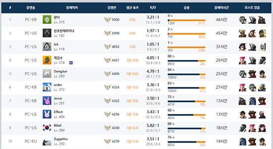 Áö³­ 2ÀÏ °æÀïÀü ½ÃÁð2¸¦ ¿ÀÇÂÇÏ¸ç ºê·ÐÁî, ½Ç¹ö, °ñµå µî µî±ÞÁ¦¸¦ Àû¿ëÇÏ°í ½Ç·Â ÆòÁ¡ 5õÁ¡±îÁö À¯ÀúµéÀÇ °æÀï ±¸°£À» ´Ã¸° '¿À¹ö¿öÄ¡'´Â ½Â·ü 4%, 2%, 1%ÀÎ À¯Àú°¡ °¢°¢ ÃÖ°í Á¡¼öÀÎ 5õÁ¡À» ´Þ¼ºÇÑ ÈÄ ¼¼°è ·©Å· 1~3À§¸¦ ±â·ÏÇØ ³í¶õÀÌ µÇ°í ÀÖ´Ù.