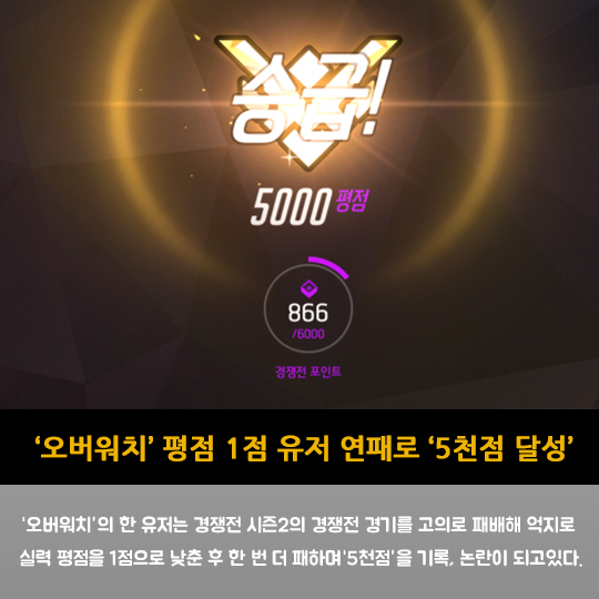 ¿À¹ö¿öÄ¡ ÆòÁ¡ 1Á¡ À¯Àú ¿¬ÀÌÀº ÆÐ¹è·Î '5õÁ¡ ´Þ¼º'