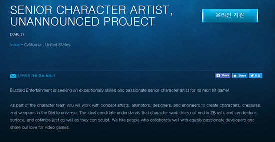ºí¸®ÀÚµå´Â Áö³­ 9¿ù¿¡µµ 'µð¾Æºí·Î ¹Ì°ø°³ ÇÁ·ÎÁ§Æ®'ÀÇ °ÔÀÓ µð·ºÅÍ, ¼ö¼® ¾Ö´Ï¸ÞÀÌÅÍ, ¼ö¼® ij¸¯ÅÍ ¾ÆÆ¼½ºÆ®, ¼ö¼® ÄÁ¼Á ¾ÆÆ¼½ºÆ® µîÀ» ¸ðÁýÇÑ ¹Ù ÀÖ´Ù.