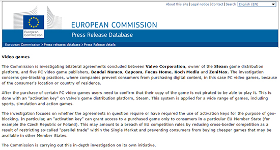À§¿øÈ¸´Â ¼ÒºñÀÚÀÇ °ÅÁÖÁö ¶Ç´Â °ÅÁÖ ±¹°¡¿¡ µû¶ó °ÔÀÓ ±¸¸Å¸¦ Â÷´ÜÇÏ´Â 'Áö¿ª Â÷´Ü ÇàÀ§'¿¡ ´ëÇØ "¹ëºêÀÇ °ÔÀÓ Ç÷§Æû ½ºÆÀ°ú ÇØ´ç °ÔÀÓ»çµéÀÌ Ã¼ÄÚ, Æú¶õµå µî ƯÁ¤ EU ȸ¿ø±¹¿¡ Á¦°øÇÏ´Â 'Ȱ¼ºÈ Ű'´Â ÇØ´ç ±¹°¡¿¡¸¸ °ÔÀÓÀÇ ¾×¼¼½º ±ÇÇÑÀ» ºÎ¿©ÇÑ´Ù"¸ç "ÀÌ´Â ´Ù¸¥ EU ȸ¿ø±¹¿¡¼ Àú·ÅÇÑ °ÔÀÓÀ» ±¸¸ÅÇÒ ¼ö ÀÖ´Â ´É·Â ¹× 'Æòµî °Å·¡'¸¦ Á¦ÇÑÇØ 'EU °æÀï¹ý'À» À§¹ÝÇÏ´Â °ÍÀÏ ¼ö ÀÖ´Ù"°í ¾ð±ÞÇß´Ù.