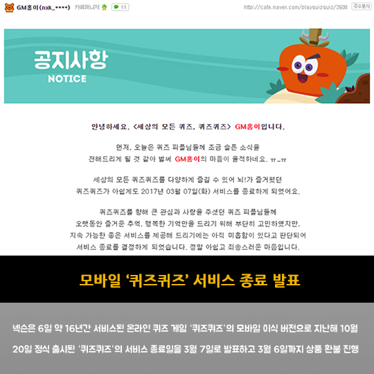 ¸ð¹ÙÀÏ·Î º¹±ÍÇÑ 'ÄûÁîÄûÁî', Ãâ½Ã 4°³¿ù¸¸¿¡ ¼ºñ½º Á¾·á