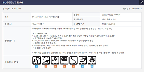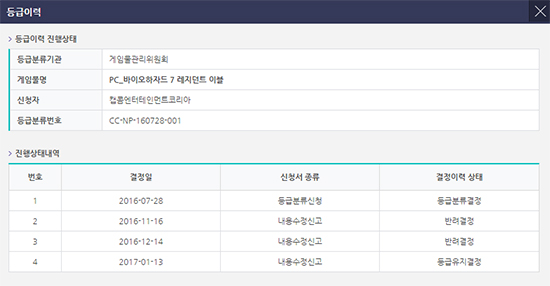 °ÔÀÓ¹°°ü¸®À§¿øÈ¸ÀÇ '¹ÙÀÌ¿ÀÇÏÀÚµå 7' µî±ÞÀÌ·Â ÁøÇà»óÅ ³»¿ªÀ» »ìÆìº¸¸é Áö³ÇØ 7¿ù µî±Þ ºÐ·ù°¡ °áÁ¤µÇ¾ú°í, 11¿ù°ú 12¿ù¿¡ 2¹ø ¹Ý·Á °áÁ¤ÀÌ ÀÖ¾ú´ø °ÍÀ» È®ÀÎÇÒ ¼ö ÀÖ´Ù. ĸÄÞ ÄÚ¸®¾Æ´Â '»ý»ç¸¦ °Ç µµ¹Ú 21'ÀÇ 'ÀÜȤ ¹¦»ç'°¡ »èÁ¦µÉ °Í¿¡ ´ëÇØ »çÀü¿¡ ¾Ë°í ÀÖ¾úÁö¸¸ ±¹³» À¯Àúµé¿¡°Ô °øÁöÇÏÁö ¾Ê¾Ò°í, ÀÌ ¶§¹®¿¡ ±¹³» À¯ÀúµéÀÇ ºñ³ÀÇ ¸ñ¼Ò¸®´Â ´õ¿í Ä¿Áö°í ÀÖ´Ù.