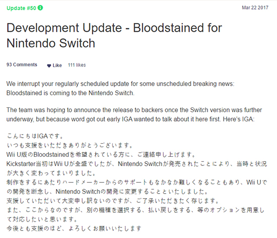 ÄÚ³ª¹ÌÀÇ ¾×¼Ç °ÔÀÓ ½Ã¸®Áî ¡®¾Ç¸¶¼º µå¶óŧ¶ó(¿µ¹®¸í ij½½¹è´Ï¾Æ)¡¯ÀÇ °³¹ßÀÚ À̰¡¶ó½Ã ÄÚÁöÀÇ ½ÅÀÛ ÇÁ·ÎÁ§Æ® ¡®ºí·¯µå ½ºÅ×Àεå: ÀǽÄÀÇ ¹ã(Bloodstained: Ritual of the Night, ÀÌÇÏ ºí·¯µå ½ºÅ×Àεå)¡¯Àº Áö³ 2015³â Å©¶ó¿ìµå ÆÝµù ű½ºÅ¸ÅÍ·Î ¸ð±ÝÀ» ½ÃÀÛÇØ 550¸¸ ´Þ·¯(¾à 62¾ï ¿ø) ÀÌ»óÀÇ ¸ð±Ý¾×À» µ¹ÆÄÇϸç ÈÁ¦°¡ µÇ¾ú´Ù.